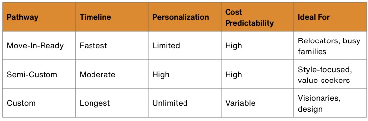Semi-Custom vs. Custom vs. Move-In-Ready: At a Glance