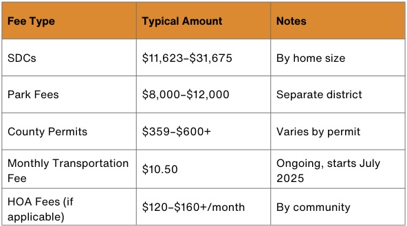 If you’re buying new construction, plan for one-time fees before you even move in. The biggest are System Development Charges (SDCs), which fund local infrastructure like roads, water, and parks. For 2025: